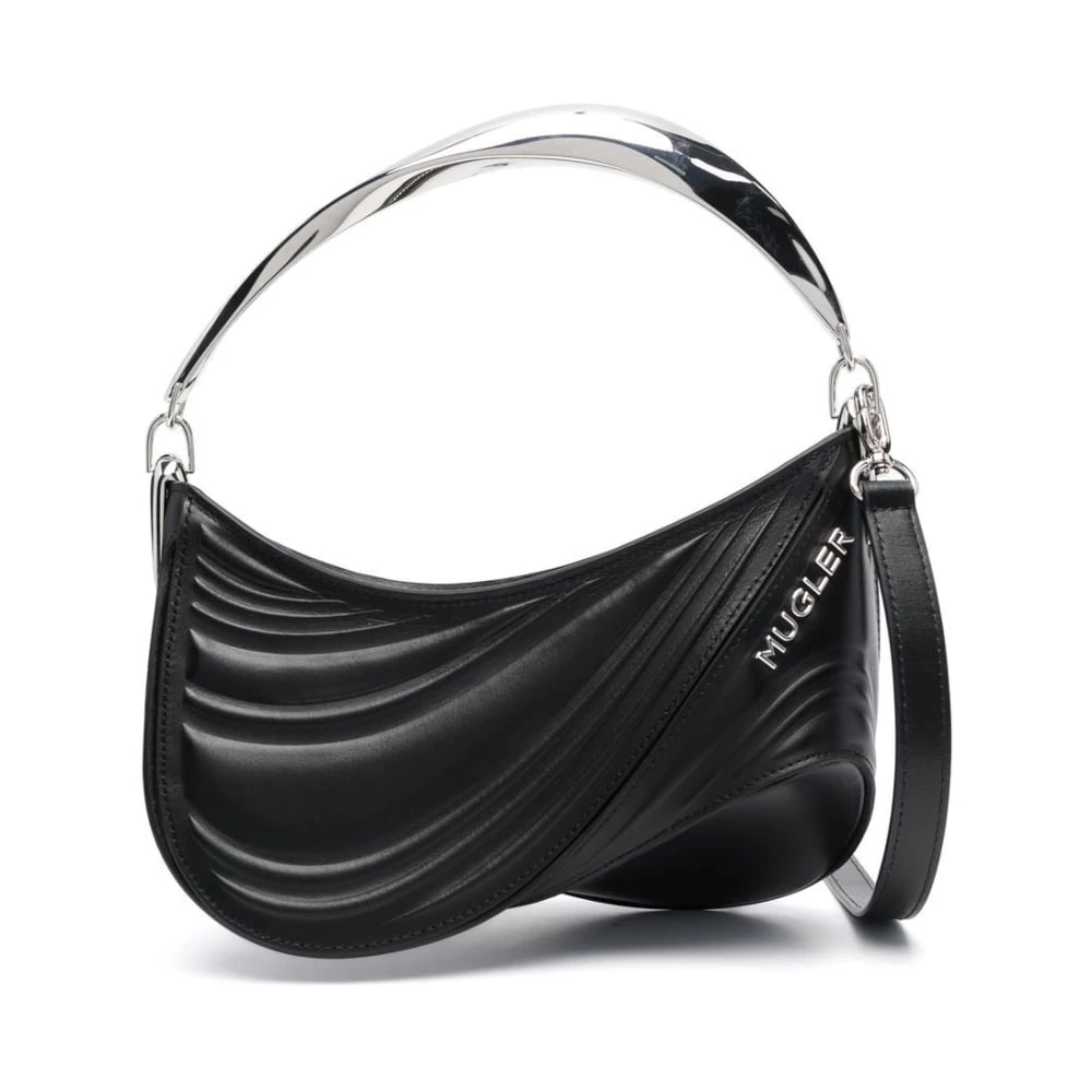 Mugler, Väskor , Dam, ONE Size, Läder, Svart Spiral Curve Präglad Tygväska