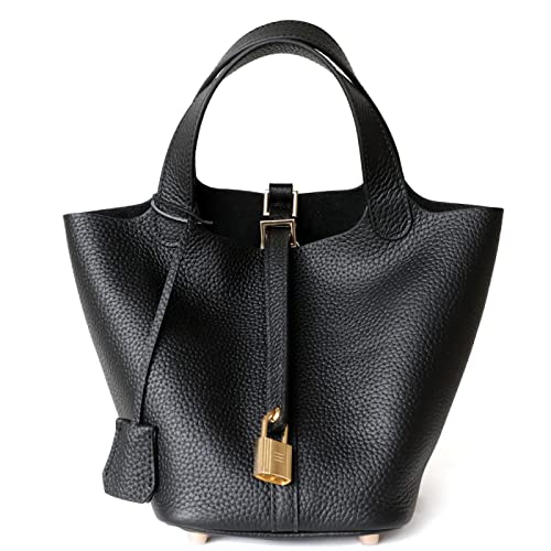 Kohudsläderväska Bucket Bag Dam Stor Kapacitet Shopping Grönsakskorg Läder Tygväska,Svart