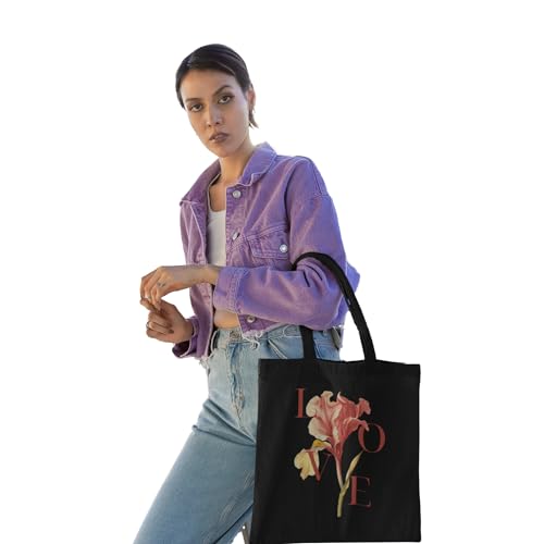 Republic of California ARCTT034-BK toteväska kärlek rosa vintage design - romantisk och tidlös tygväska, svart, svart, 38 X 42 CM, Utility