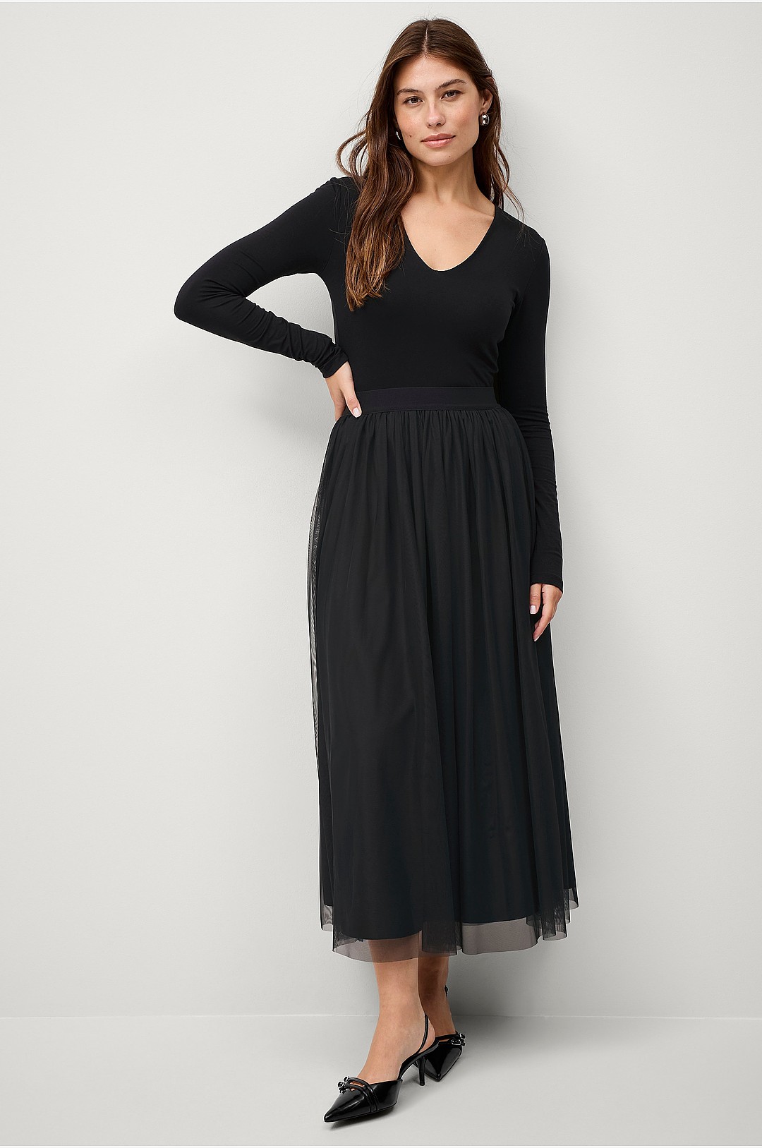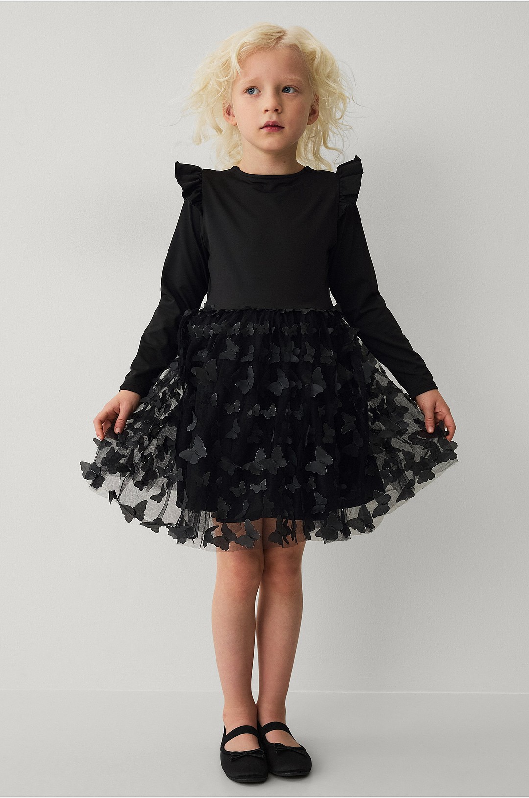Ellos Collection - Klänning i trikå med tyllkjol - Svart