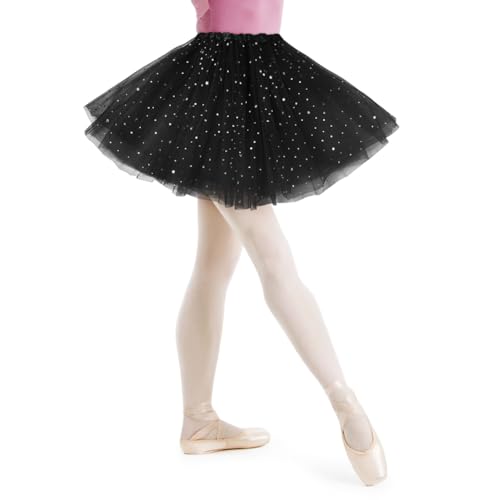 AYBUY Tutu för kvinnor, klassisk kjol, elastisk tyllkjol i 3 lager, balettkjol, underkjol, kjol för karneval, temafest, balett, dans, fin klänning, halloweenkostym, Svart paljetter stjärnor, Regulär