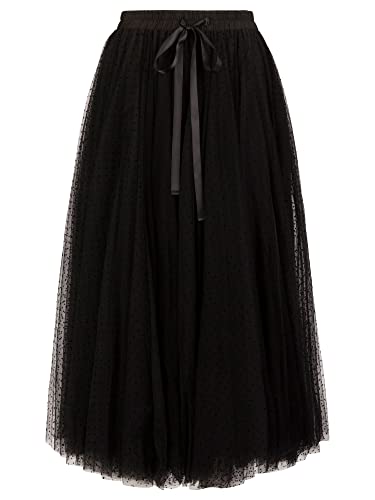 Jemsia Tyllkjol för kvinnor, midi, volanger, nivå, kakkjol, elegant, elastisk hög midja, A-linje, underkjol, nät, lång tutu, blommiga kjolar för bal, hemkomst, födelsedagsfest, Svart, en storlek