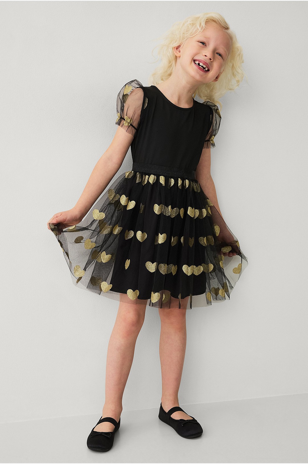 Ellos Collection - Klänning med tyllkjol och puffärmar - Svart