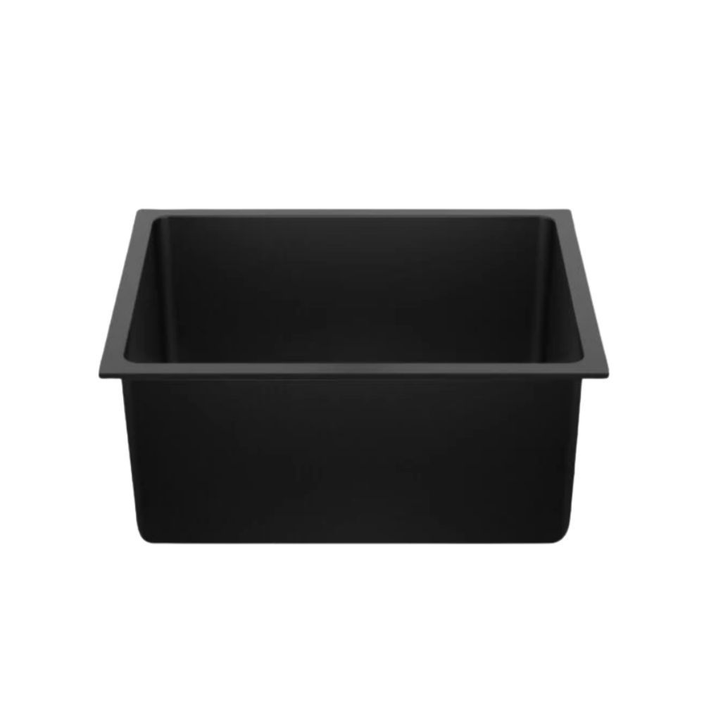 HaTur diskbänks- arbetsstation med vask, enkel skål, 60 x 45 cm, diskbänksset i rostfritt stål med 3 förborrade hål (svart)