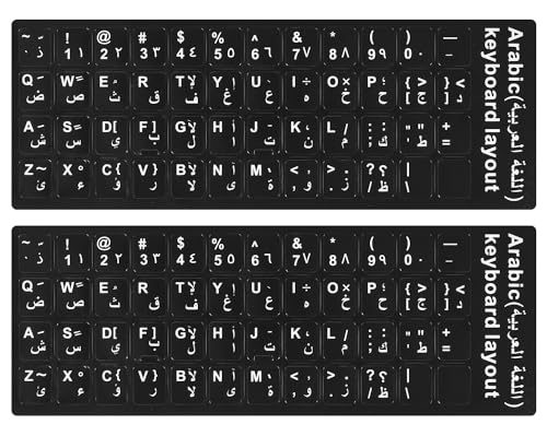 CaseBuy 2 st arabiska tangentbordsklistermärken, arabisk-engelska tangentbordsbokstäver ersättningsklistermärken svart bakgrund med vitt teckensnitt för dator bärbar dator bärbar dator, matt arabiskt
