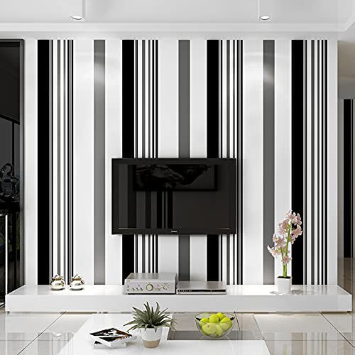 FLZHime Geometrisk vertikal rand svart vit grå mönster TV-bakgrund vardagsrum sovrum café hotell restaurang modern minimalistisk europeisk stil 4,73 cm B x 80 cm L icke-vävd icke-klistrad tapet