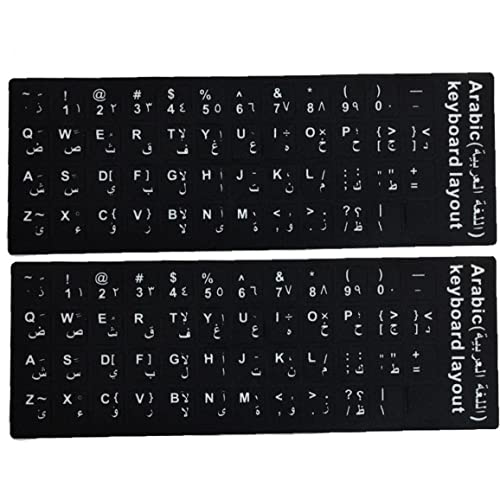 Fopytu Arabiska tangentbordsklistermärken, 2 st universella tangentbordsklistermärken svart bakgrund med vita bokstäver för dator bärbar dator anteckningsbok