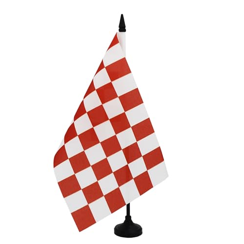 AZ FLAG - Damier Brun och vit bordsflagga 21 x 14 cm - liten kontorsDamiers-flagga 100% polyester med 25 cm skaft och svart plastbas
