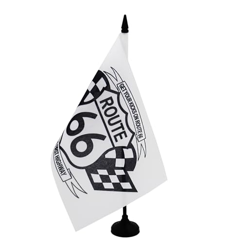 AZ FLAG - Vägbordsflagga 66 svart och vit 21 x 14 cm - liten flagga av vägen 66 i USA 100% polyester med 25 cm skaft och svart plastbas