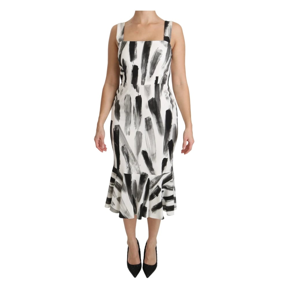 Dolce & Gabbana, Klänningar , Dam, M, Vit Svart Tryckt Sheath Midi Klänning