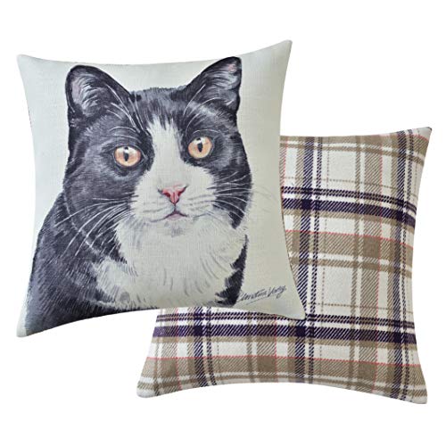 Viceni Svart och vit katt fylld kudde – 43 x 43 cm/17 x 17 tum, flerfärgad, 43 x 43 cm