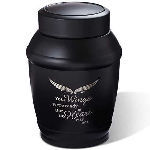 LINES ARTE 14 cm medelstora urnor för mänsklig aska vuxen man, svarta kremeringsurnor för vuxna aska, änglavingar dekorativa urnor