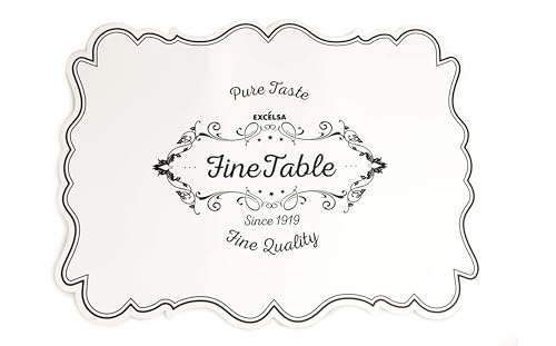 Excelsa uppsättning av 6 bordstabletter, polypropylen, vit med svarta dekorationer