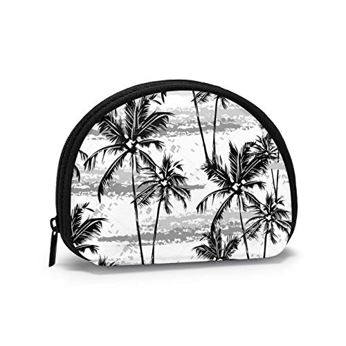 Monokrom tropisk som visar vita palmer på svarta bordstabletter kvinnor flickor skal kosmetika smink förvaringspåse utomhus shopping mynt plånbok arrangör
