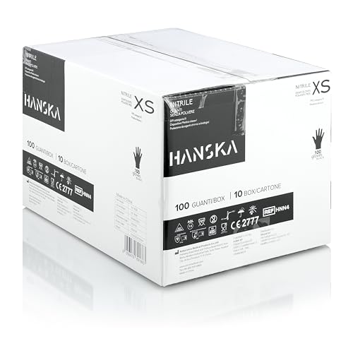 HANSKA 1 000 Engångshandskar i nitril, svarta – Pulverfria – Engångshandskar för båda händerna – Icke-sterila – Gummibaserade – Lämplig för medicinska områden, livsmedelshantering (1 000, XS)