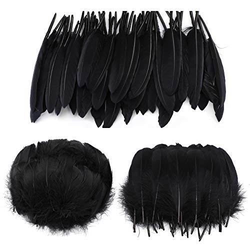 MWOOT 250 st svarta fjädrar för hantverk gåsfjädrar gör-det-själv drömfångare festtårta halloween eller påskdekorationer
