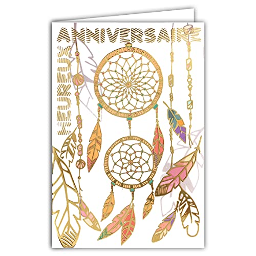 Lyckokort till födelsedagen, drömfångare fjädrar, svarta och guldfärger, glänsande, elegant, moderiktig, dekoration