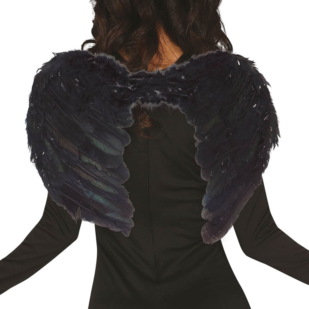 Guirca- Svarta vingar med fjädrar för vuxna, Svart, En storlek, 16266