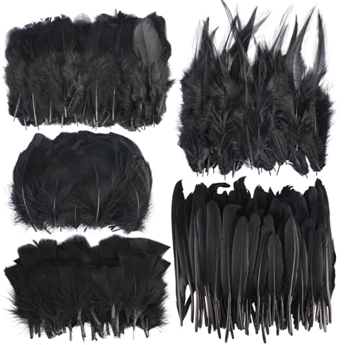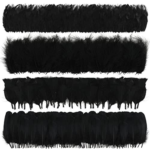 MWOOT 400 stycken svarta fjädrar för pyssel dekoration, 7–15 cm natur pysselfjädrar, 4 typer fjädrar för drömfångare karnevaldräkter halloween masker tillverkning påskägg tillbehör dekoration,