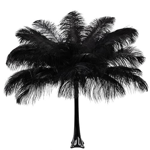 THARAHT Svarta strutsfjädrar 12 st stora naturliga bulk 40 cm-45 cm för bröllopsfest bordsuppsatser, halloween och heminredning fjädrar