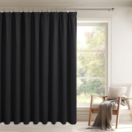 DWCN svarta gardiner vardagsrum veckband 245 x 250 cm (H x B), set om 1, rumsavdelare, gardiner, termogardin, mörkläggningsgardiner med gardinslipsar för skena, sovrum, köldskydd