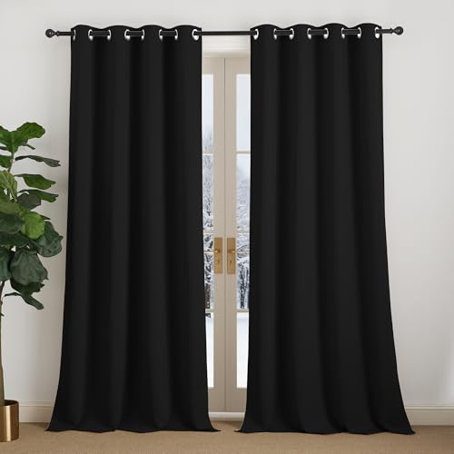 Joydeco Mörkläggningsgardiner, 108 tum, långa för sovrum, termiskt isolerade, svarta gardiner med 2 paneler, set med mörker, draperier för vardagsrum, fönster, stångficka bakflik (W52 x L108 tum