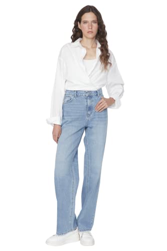 TRENDYOL dam låg midja breda ben 90-tals jeans, blå, 40