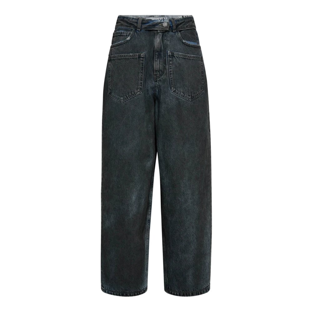 Haute L'Amitié, Jeans , Dam, M, Bomull, Hög midja svarta jeans med stora fickor