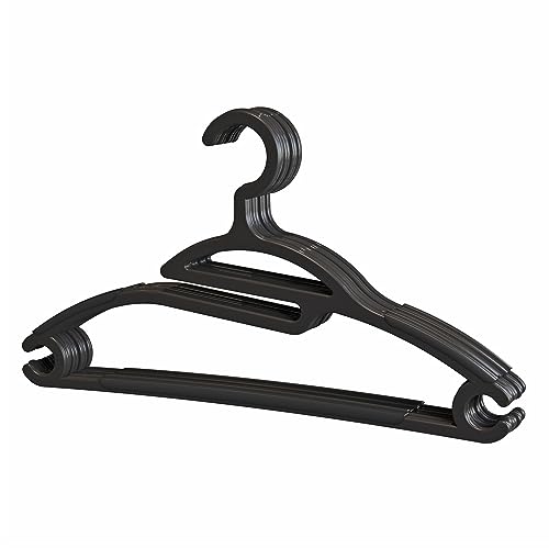 HOUSE DAY Svarta plasthängare 10-pack, plastklädhängare med inbyggda krokar, hållbar och stark klädhängare för garderob, platsbesparande klädhängare för skjortor, rockar, kjol, klänning
