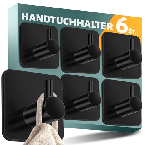 Menz handdukshållare utan borrning set om 6 – svarta krokar självhäftande, snygga väggkrokar klassiska-funktionella – starka självhäftande krokar som handdukskrok badrum