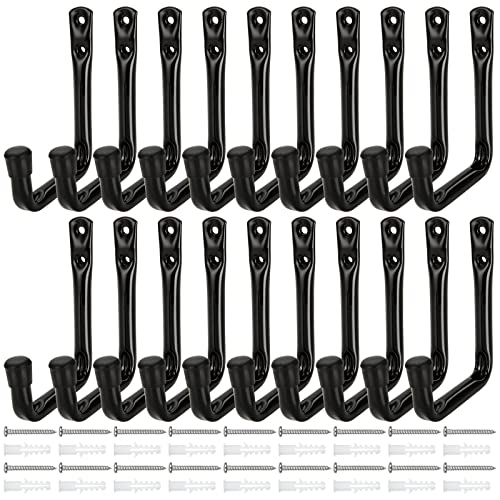 AKOLAFE 20 stycken garageväggkrokar, kraftiga svarta krokar med skruvar för garageväggar, skjul, cykel, trädgårdsredskap (12 x 9 cm)