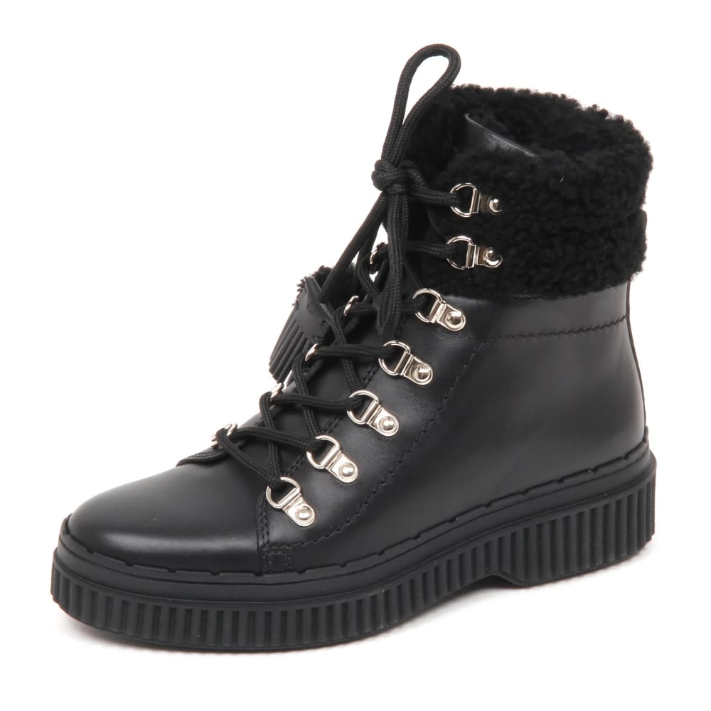 Tod's, Skor , Dam, 39 EU, Läder, Svarta läderkängor med krokar