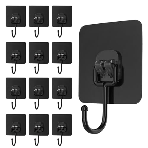 MOSTFUN 12 Stycken Självhäftande Krokar - Svarta, Extra Starka 30 kg (Max) Vattentäta och Spår Fria Väggkrokar för Kök och Badrum