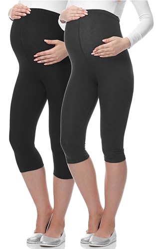 Be Mammy 3/4 Leggings för Mammor för Dam 03 2 Pack (Svarta Prickar/Svarta Prickar, M)
