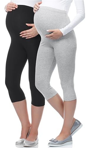 Be Mammy 3/4 Leggings för Mammor för Dam 03 2 Pack (Svarta Prickar/Melange, L)