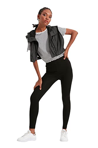 Trendyol Kvinnor, svarta termiska stickade tights, leggings, XXS