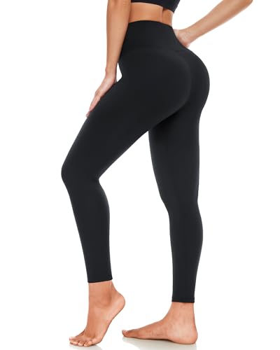 JTSONN Sportleggings dam hög midja sömlösa sportbyxor långa ogenomskinliga yogabyxor gym leggings svarta magkontroll sportleggings tights yoga fitness, svart, M