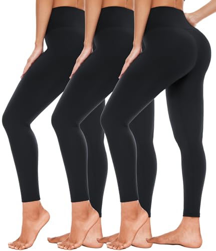 SINOPHANT 3-pack leggings för kvinnor, hög midja, ogenomskinliga, svarta, gym, yoga, sport, 3-pack, svart, L/XL