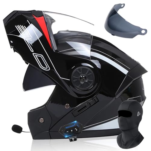 Bluetooth Modular Motorcykel Hjälm Flip Up Hjälm Med Ansiktsmask Och Svarta Linser ECE Certifierad Full Face Motorcykel Hjälm Avtagbar Foder Snabbutlösning Spänne Automatisk respons