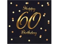 Godan Servetter Happy 60 Birthday Svarta 33X33 Cm 20 St