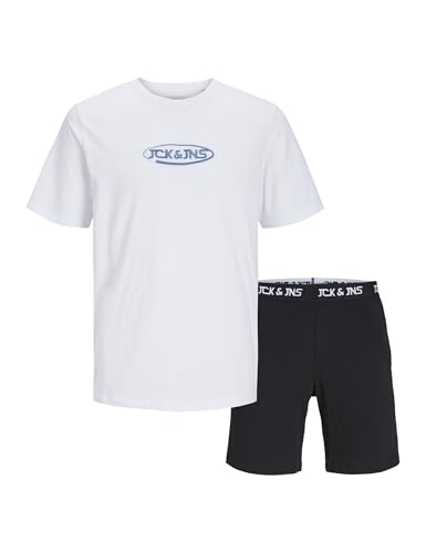 JACK&JONES JUNIOR Pojkar Jacoliver SS T-shirt och shorts set Jnr t-shirt, Vit/förpackning: svarta shorts, 116