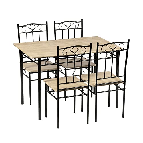 IPOTIUS Matrumsset med matbord och 4 stolar, matbord och stol av bokträ, svarta metallben, för matsal, kök, vardagsrum