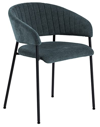 AC Design Furniture Anna Matstolar set om 2, mjuka matstolar med chenille-effekt, köksstolar, lounge matstolar med armstöd, mörkblå stoppade stolar med svarta metallben