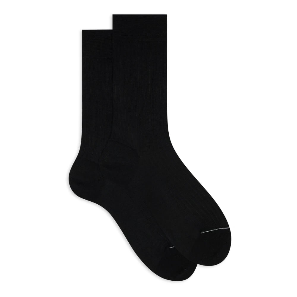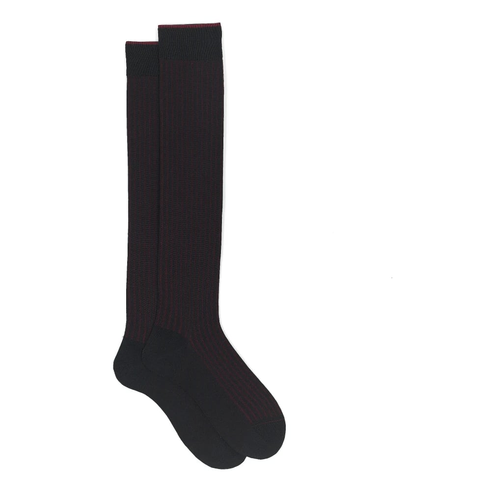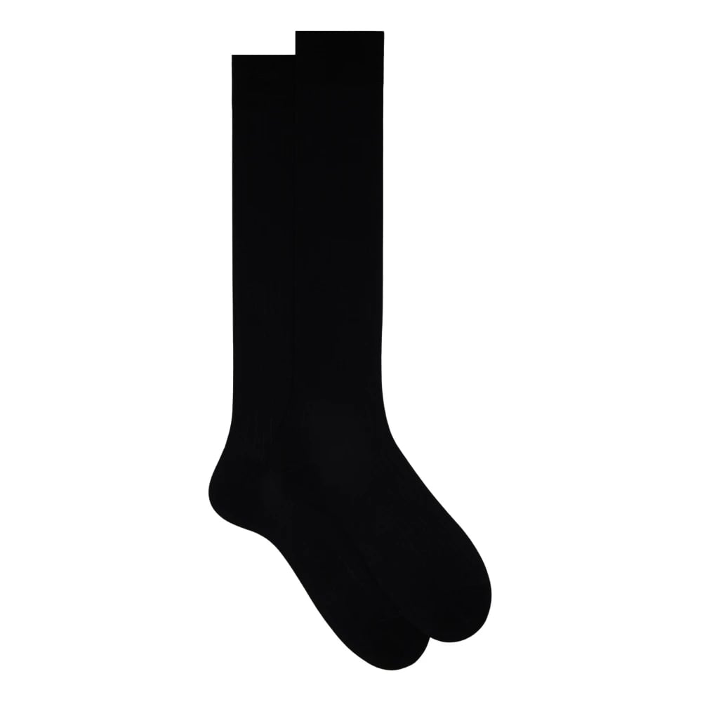 Gallo, Underkläder , Herr, M, Bomull, Mäns svarta långa bomullsribbade strumpor med enfärgad