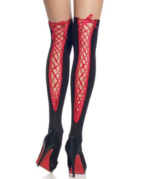 Svarta Strumpor med Mönstrad Kant och Söm bak - Plus Size