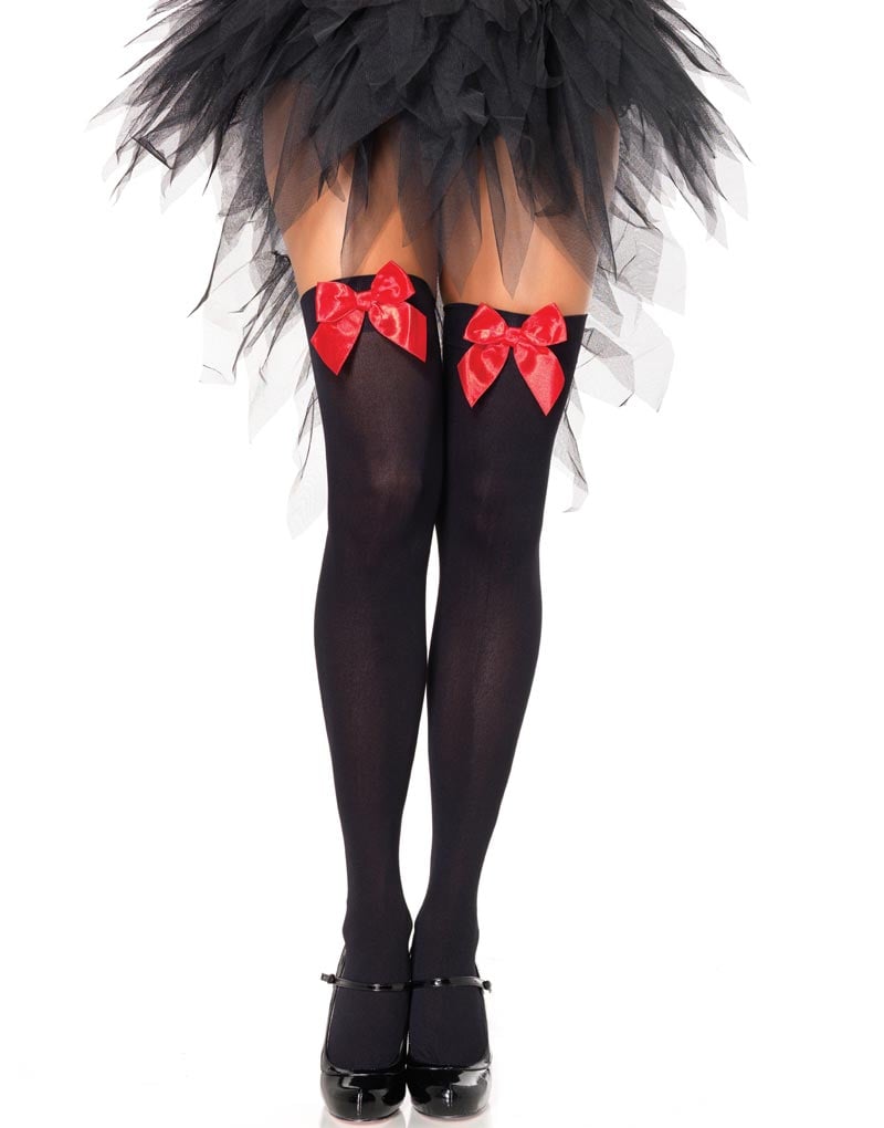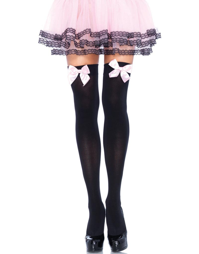 Svarta Strumpor med Vita Spetskanter och Rosetter