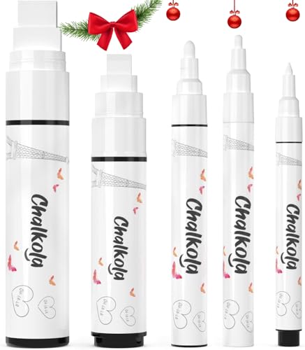 Chalkola Vita kritpennor med extra fin spets (4-pack 1 mm spets) - vita torra suddbara kritbläckmarkörer för skrivtavla, svarta tavlan, fönster, skyltar, glas - vattenbaserad, giftfri, avtorkningsbar