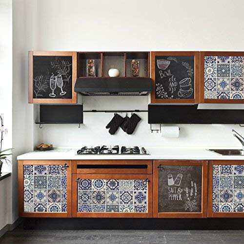 WALPLUS FW5907-COM-WM5107x4/WS1109 blå kakel och svarta tavlan möbelomslag självhäftande dekal, vinyl, flerfärgad, 90 x 60 x 4 cm