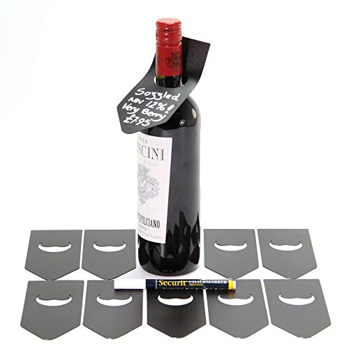 SECURIT flaska för svarta tavlan (tvättbar) – set med 10 etiketter + vit kritmarkör, svart, 16 x 6,5 x 1,1 cm