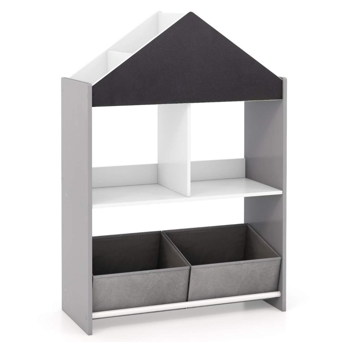 Barnbokhylla med svarta tavlan och 2 lådor – grå, 6 hyllor